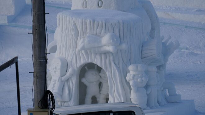 いろいろなキャラクターの雪像もあり、とても楽しそうな会場です。